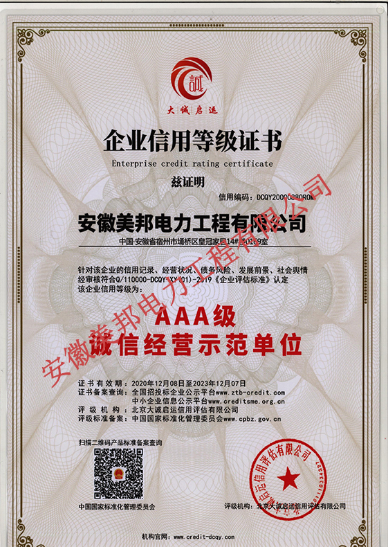 安徽美邦電力工程有限公司成立于2015年6月,坐落于宿州高新區(qū)。是一家從事電力工程設(shè)計(jì)、電力設(shè)備生產(chǎn)、電力工程施工、電力托管服務(wù)、電力工程搶險(xiǎn)為一體的一站式綜合性公司。公司現(xiàn)有各類(lèi)專(zhuān)業(yè)技術(shù)職稱(chēng)的管理人員及大批從事電力工程專(zhuān)業(yè)施…